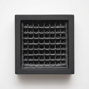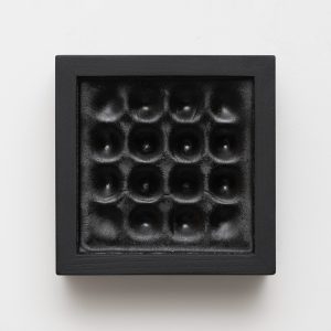 人為的に形づくられた型の内部構造と、収縮という自然的な変容が結びつくことによって、予想外の形体が生まれる偶発性に着目した作品です。