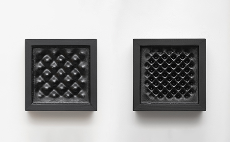 型の中に仕込んだ構造体の形状と、凝固時の収縮によって自然に生まれる形状を活かした50点組のレリーフ作品。